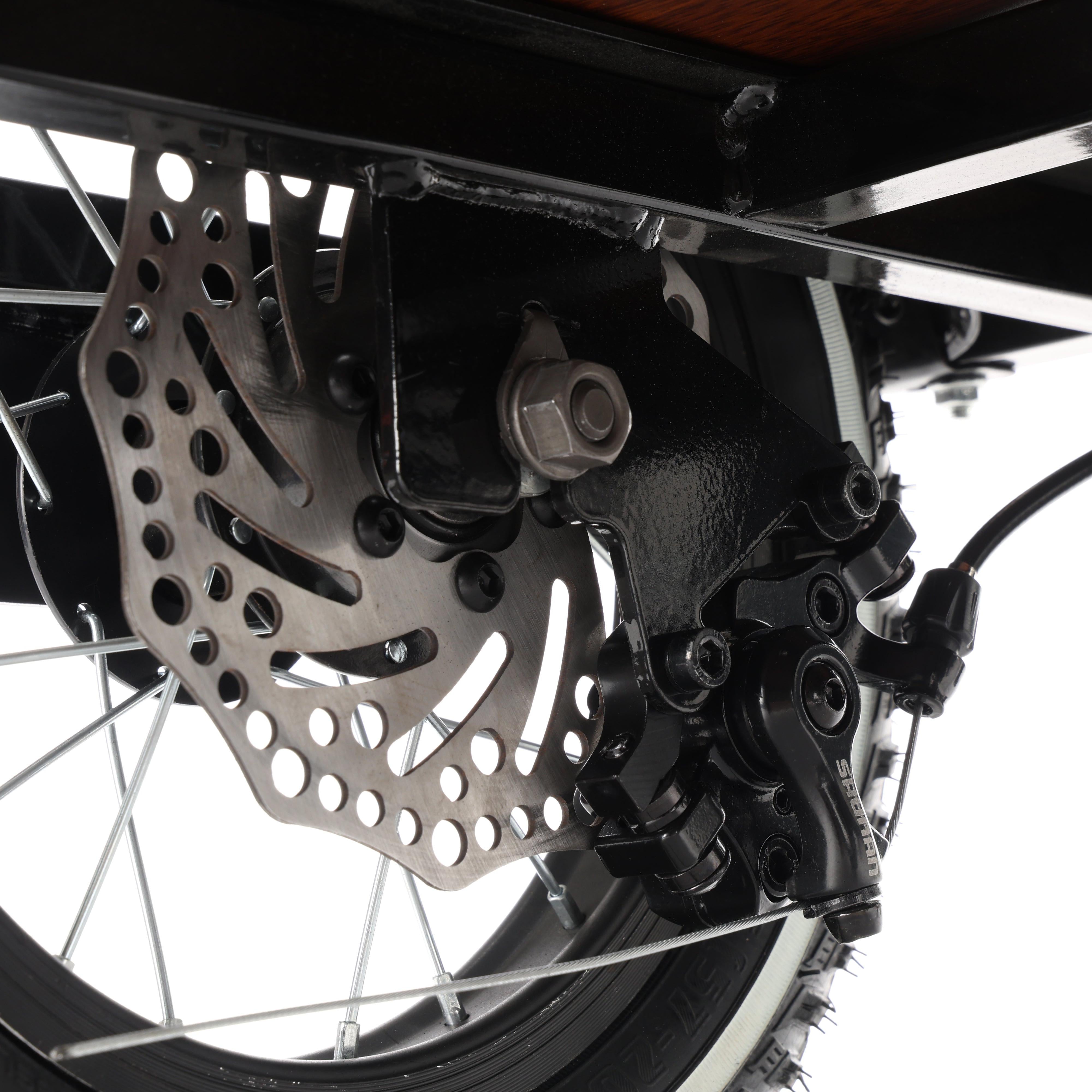 Dual disc brakes provide quick and reliable stopping power in both wet and dry conditions.
