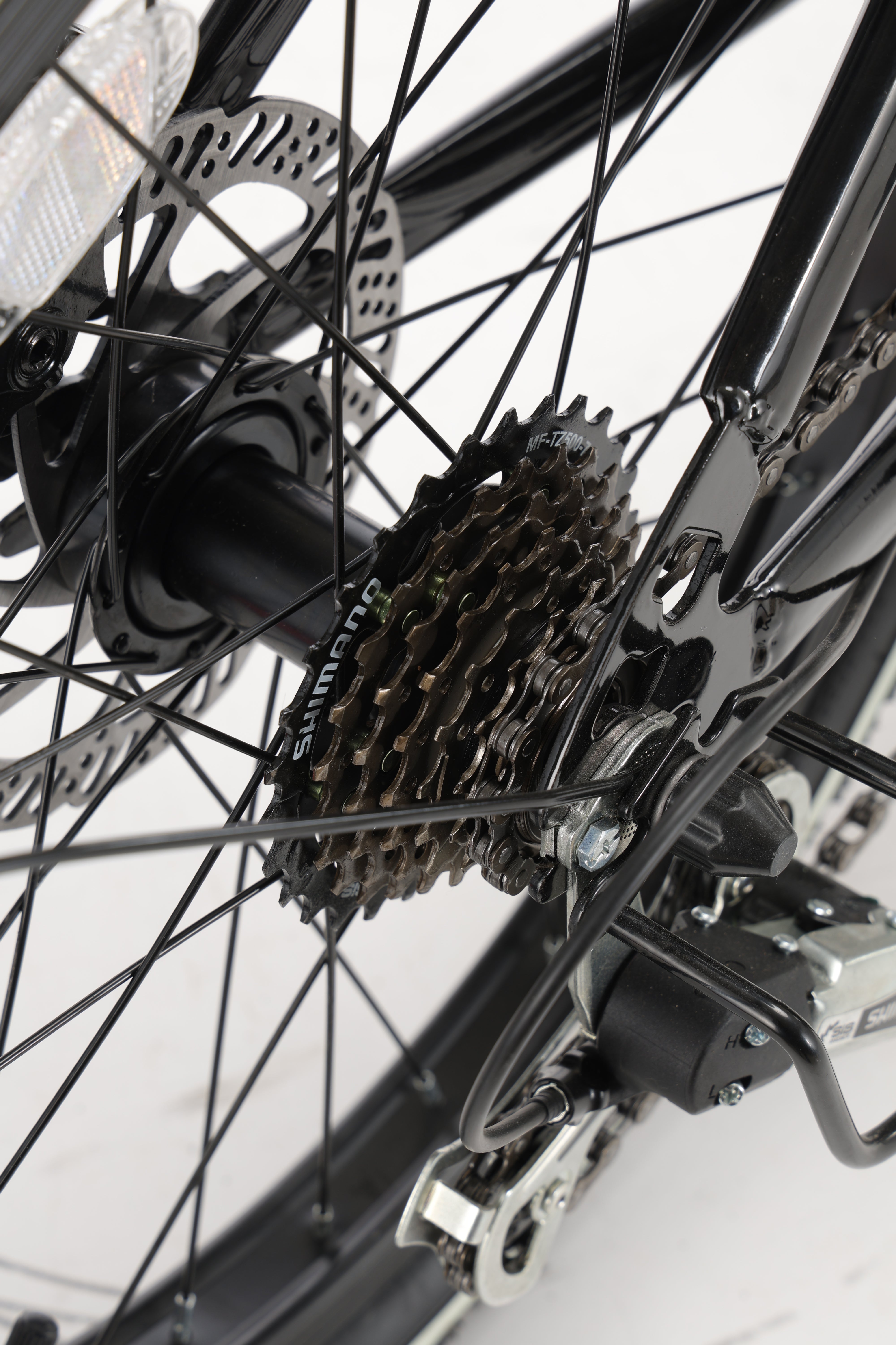 21-speed Shimano gear set provides smooth shifting and versatile performance across different terrains.